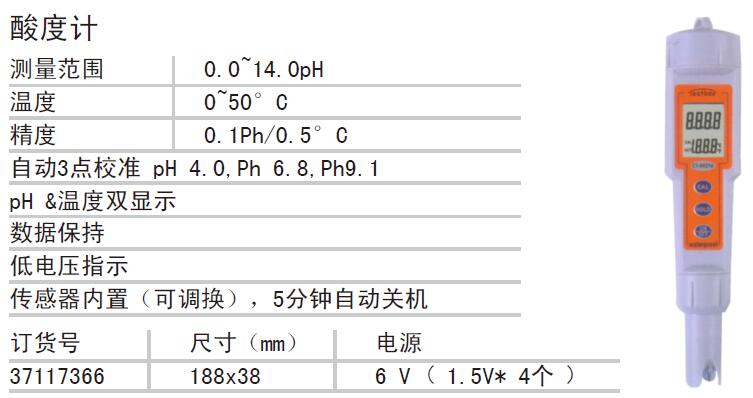 规格:  0.0~14.0pH 制造商型号:  37117366