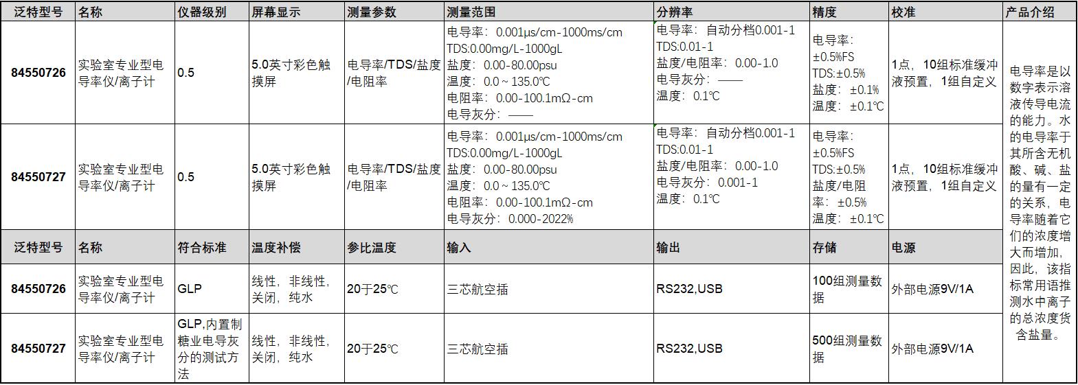 电导率:0.001μs/cm-1000ms/cm TDS:0.00mg/L-1000gL 盐度:0.00-80.00psu 温度:0.0~135.0℃ 电阻率:0.00-100.1mΩ-cm 电导灰分:——