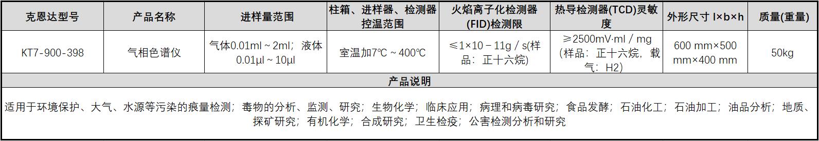 B55253 KT7-900-398 KT7-900-398 气体0.01~2mL 液体0.01~10μL 室温+7~400℃ ≤1×10~11g/s(样品正十六烷) ≥2500mV.mL/mg(样品正十六烷 载气H2) 600×500×400mm 50kg 89760.00