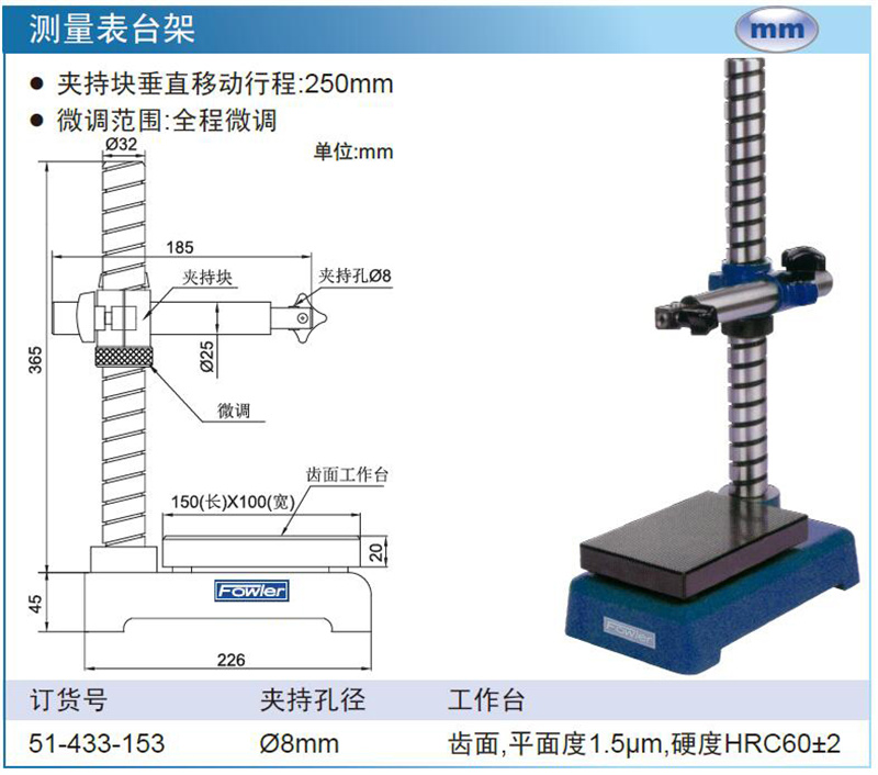 ·夹持块垂直移动行程:250mm ·微调范围:全程微调