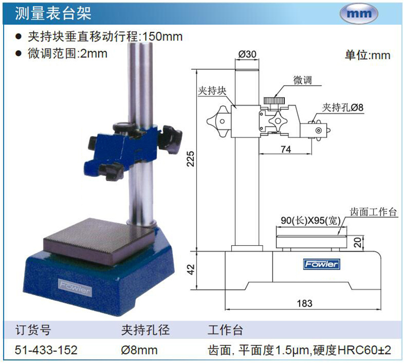 ·夹持块垂直移动行程:150mm ·微调范围:2mm