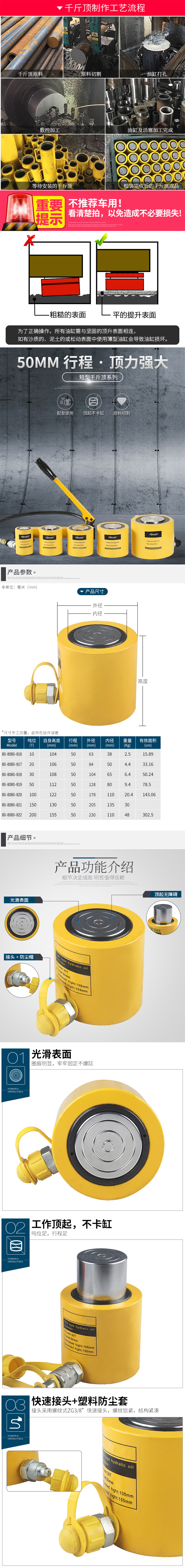 ·表面耐腐蚀处理,光泽亮丽不易生锈 ·高强度合金钢,经顶级热处理 ·进口密封件,使油缸连续工作不易磨损 ·防尘密封圈可减少污染,延长油缸使用寿命